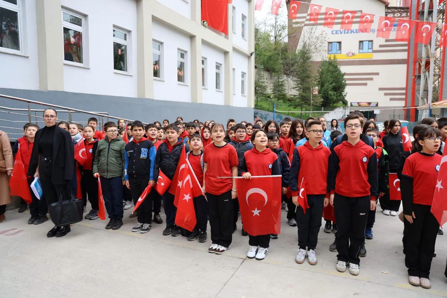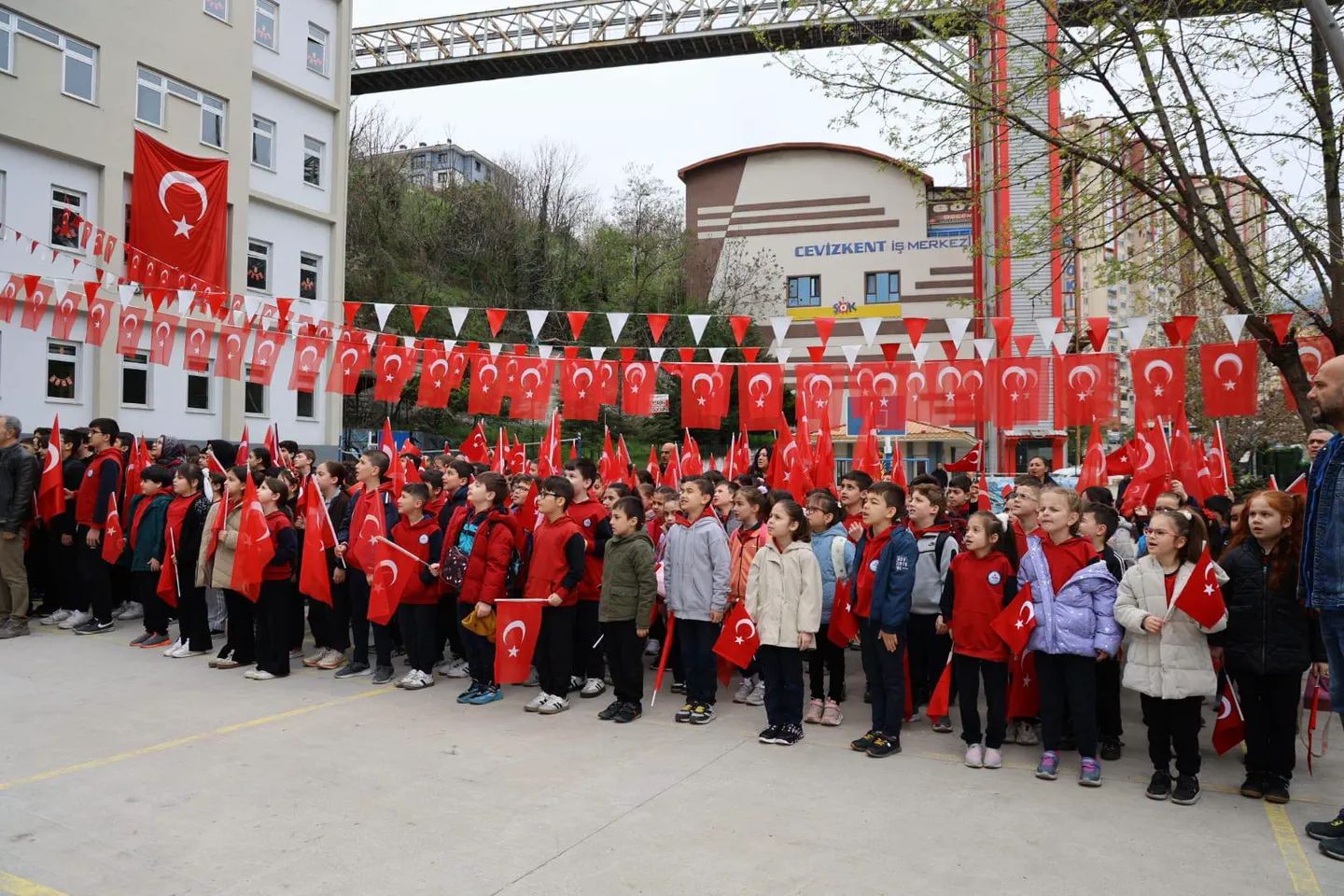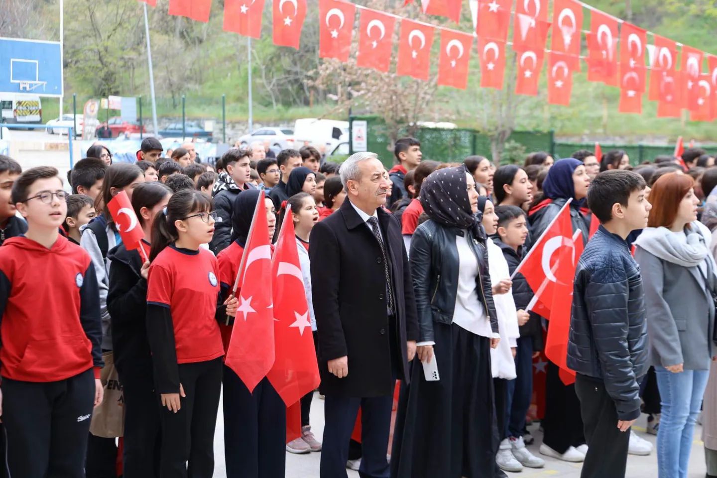 Karabük İl Millî Eğitim Müdürü Nevzat Akbaş, TOKİ Cevizkent Okullarında düzenlenen bayrak törenine katıldı.Hafta içinde yaşadığımız elim hadiselerin ardından, 20 Nisan 2026 Pazartesi günü tüm okullarımızda anlamlı bir birlik ve beraberlik töreni gerçekleştirildi. Okullarımız bayraklarla donatıldı, öğrencilerimiz bayraklarla okula geldi. Hep bir ağızdan okunan İstiklal Marşı’mızın ardından kaybettiğimiz canlarımız için dualar edildi. Öğrencilerimiz daha sonra sınıflarına girdi.İl Millî Eğitim Müdürü Nevzat Akbaş, “Okullarımız güvenli bir şekilde eğitim öğretime başlamıştır. Fedakâr öğretmenlerimiz, yöneticilerimiz ve sevgili öğrencilerimizle birlikte okullarımızda var olmaya devam edeceğiz.” dedi.Tüm öğrenci ve öğretmenlerimize başarılar dileriz.